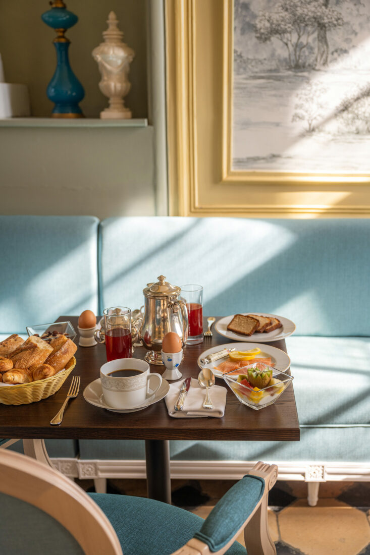 De 7h30 à 10h (10h30 le dimanche), un petit-déjeuner continental (28€) vous est servi dans le Petit Salon et son voisin, le Salon Jaune, au château.