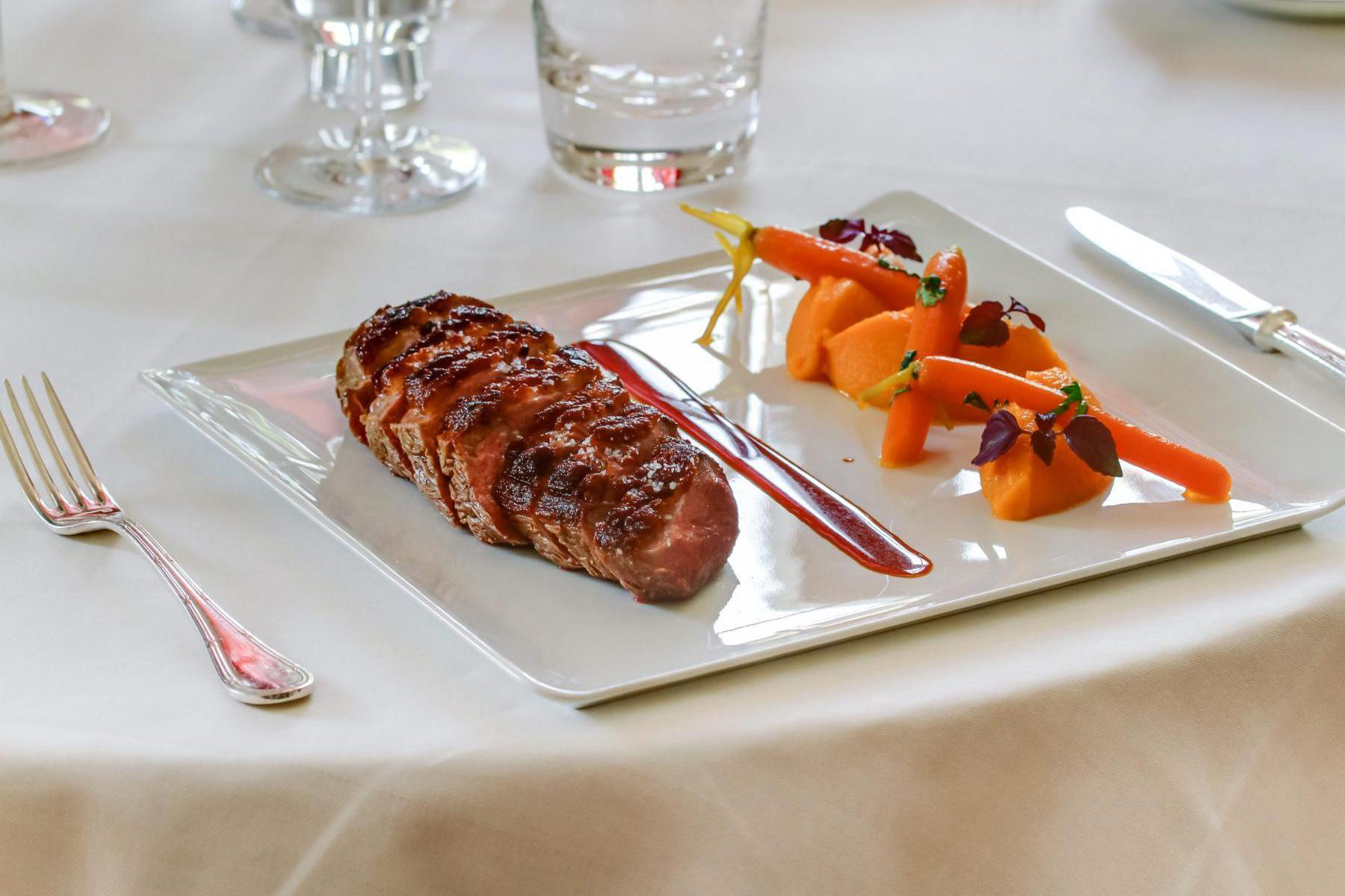 Ici la tradition est en majesté. Les produits sont reçus entiers pour être travaillés et déclinés en limitant les pertes. Les morceaux sont taillés, les filets levés, accompagnés de légumes souvent locaux et toujours de saison, pour être préparés en recettes éprouvées, délicieuses, revisitées sans jamais être dénaturées.